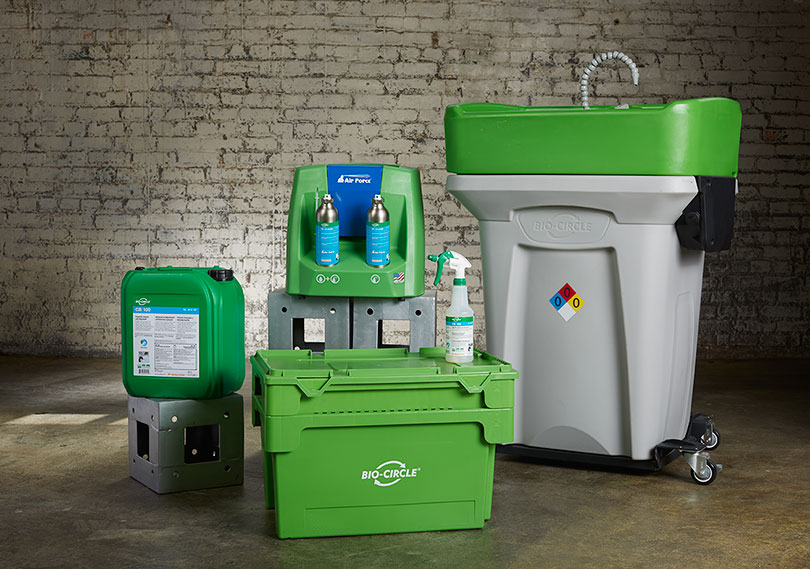 La línea de productos Bio-Circle está dedicada a contribuir al éxito de nuestros clientes al mejorar las condiciones de salud y seguridad de los trabajadores, proteger el medio ambiente al reemplazar los solventes que emiten COV (Compuestos Orgánicos Volátiles) por productos sin COV, Además ayuda a reducir los costos de desperdicio y operación al tiempo que aumenta la productividad.